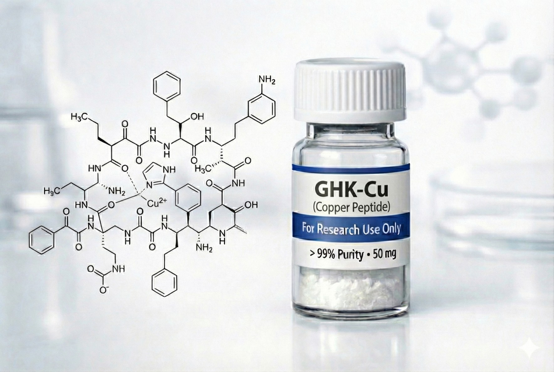 This content is for educational and research purposes only. GHK-Cu for topical/oral routes is FDA Category 1 (Under Evaluation), permitting compounding use. Injectable GHK-Cu is FDA Category 2, prohibited from compounding due to safety concerns. While GHK-Cu has been extensively used in cosmetic products for 40+ years and studied in multiple clinical trials for topical skin applications, it has never been FDA-approved as a pharmaceutical drug. Systemic therapeutic applications (COPD, cancer, cardiovascular disease) are based on preclinical research and gene expression studies without human clinical trials. All products are intended strictly for laboratory research and development purposes only.