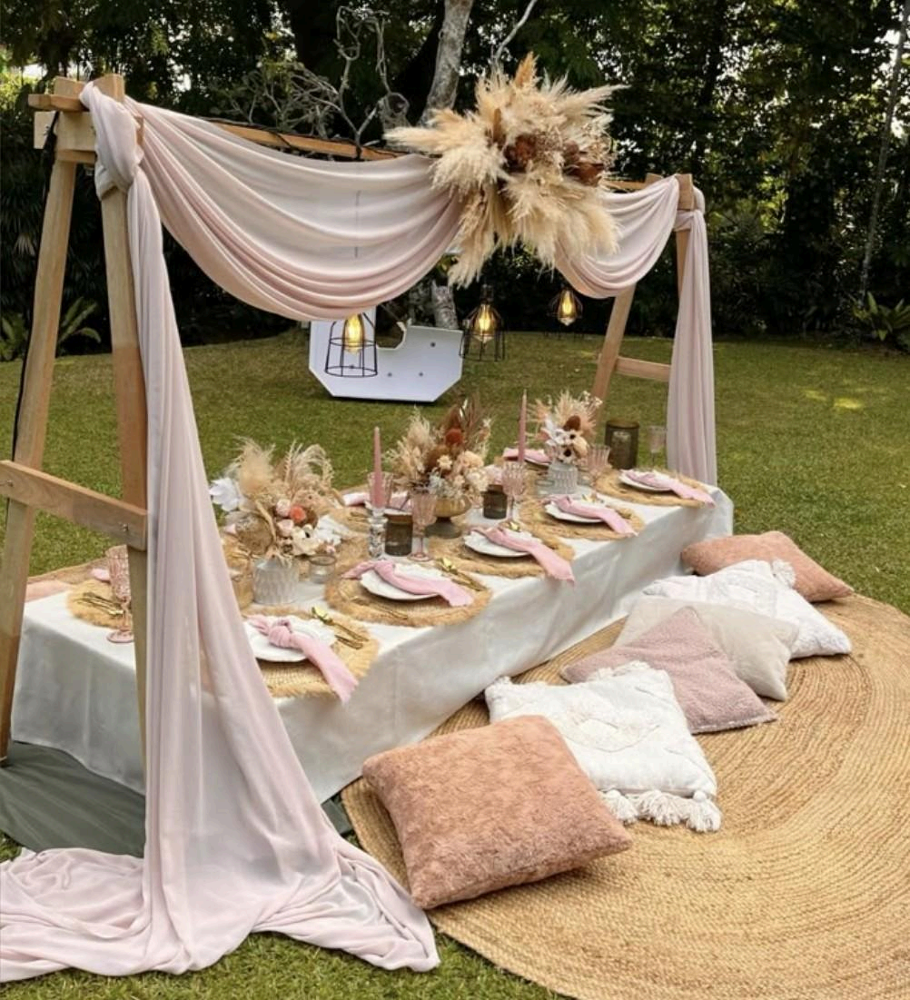 A: Absolutely! The Picnic Co. offers curated styles such as Romantic Luxe, Modern Chic, and Classic Elegance—but we also love creating custom looks inspired by your vision or color palette.